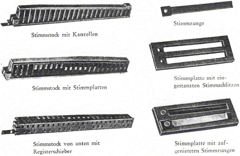 Dieser Vorgang ist so zu erklären: Die Stimmzunge befindet sich erst einmal in Ruhestellung. Durch einen Strom verdichteter Luft wird sie in den „Stimmenschlitz“ hineingezogen bzw. hineingedrückt, schwingt aber infolge ihrer Elastizität wieder zurück. Unter und über der Stimmzunge bilden sich Druckunterschiede, und sie gerät durch die eigene Federkraft in Schwingungen. Diese Schwingungen erzeugen abwechselnd Verdichtungen und Verdünnungen der Luft und ergeben somit den Ton.